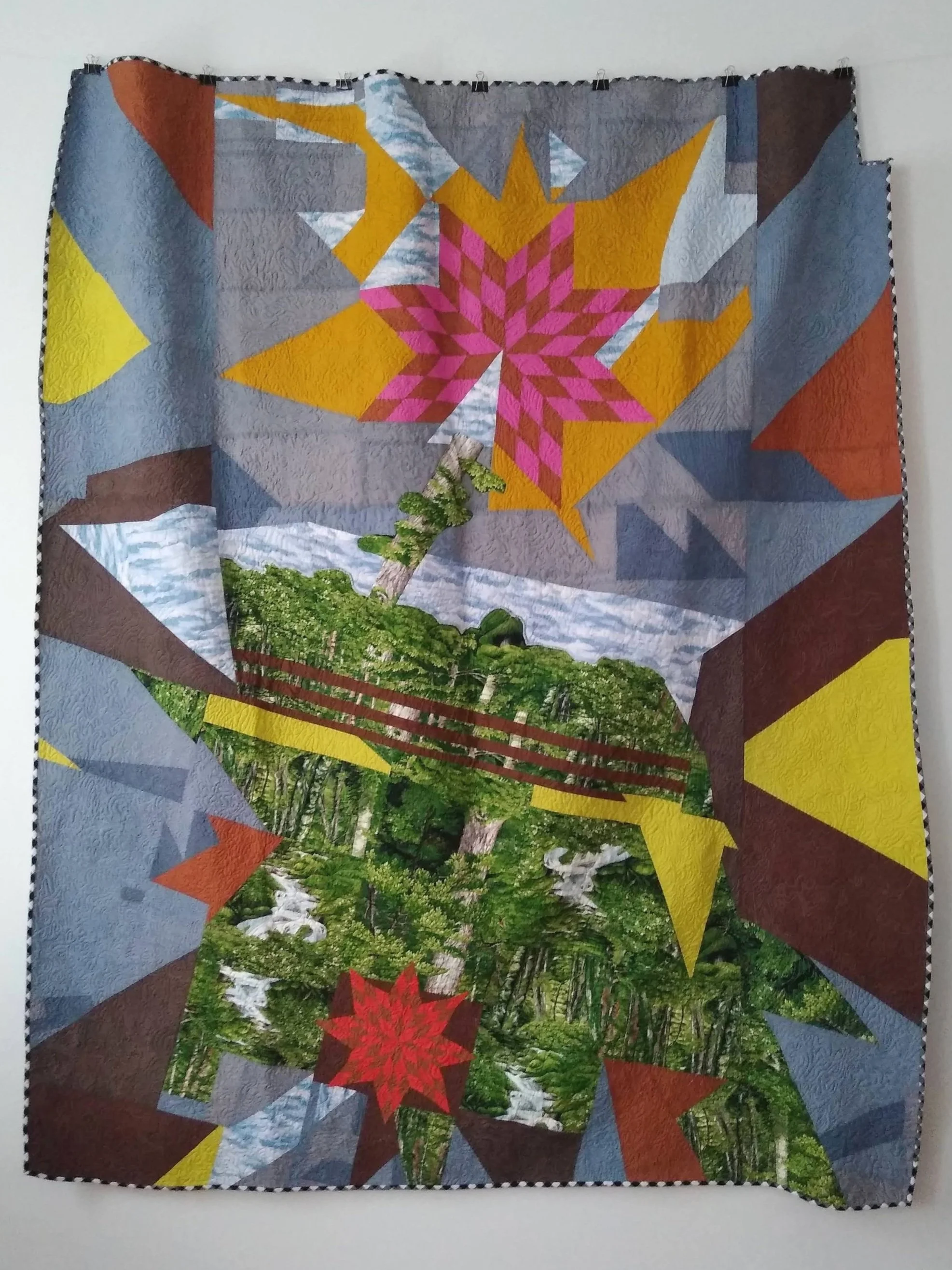 airbrushed & hand dyed cotton, vintage tweety panel, batting